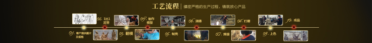 制作一件完美的鑄銅雕塑,最重要的步驟就是制作泥塑模型,然后再用工業(yè)硅膠拓印、翻模。所以泥塑的姿態(tài)、神情生動與否直接影響最終銅雕塑的品質(zhì)。所以我廠一直對泥塑模型的制作格外重視。我廠以雕塑為本,以藝術(shù)為根,挾中華文化之傳統(tǒng),偕歐陸藝術(shù)之風(fēng)韻,風(fēng)格獨(dú)特,盡顯淋漓盡致。我們本著大膽創(chuàng)新、勇于突破的精神,以追求卓越為導(dǎo)向,堅(jiān)持寧缺勿濫為原則,并可依照您提供的要求,為您量身設(shè)計(jì)制作。我廠人才濟(jì)濟(jì),有智慧嚴(yán)謹(jǐn)?shù)墓芾戆嘧樱姸嗄贻p充滿激情、充滿創(chuàng)意的專業(yè)設(shè)計(jì)團(tuán)隊(duì)、有專業(yè)技術(shù)精湛的雕塑制作人才和專業(yè)的施工隊(duì)伍。他們不僅具深厚的文化藝術(shù)底蘊(yùn),更汲取當(dāng)代雕塑精華,博采眾家之長,作品既有嚴(yán)肅莊重寫實(shí)題材,也有輕松前衛(wèi)的抽象題材,表現(xiàn)手法上浪漫主義中不乏樸實(shí),現(xiàn)實(shí)主義中蘊(yùn)涵著激情,設(shè)計(jì)理念貫穿古今、融匯中西,深刻詮釋著藝術(shù)的精髓,把古典主義和后現(xiàn)代主義完美的融合,將雕塑藝術(shù)演繹為力的凝聚、美的體現(xiàn),讓人們感受到的不僅是一種藝術(shù)的浪漫與優(yōu)雅、粗獷與悲壯、更是豐富的優(yōu)秀藝術(shù)寶藏和文化傳統(tǒng),讓您在藝術(shù)與文化中穿流,在時(shí)空中飄蕩,使靈魂在藝術(shù)的海洋洗禮。 MORE+